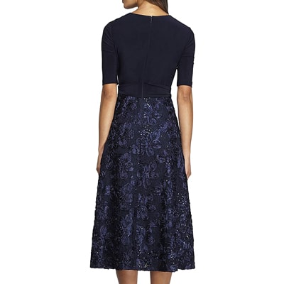 Women's Tea Length Dress with Rosette Detail (Petite & Regular)